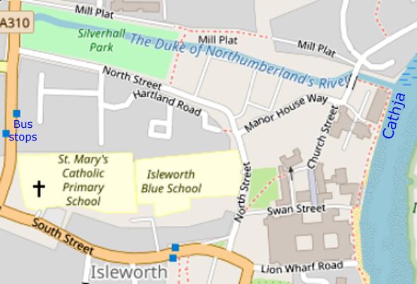 Buses 110, 267, 481 and H37 travel up and down Twickenham Road (A310). If you use the Isleworth